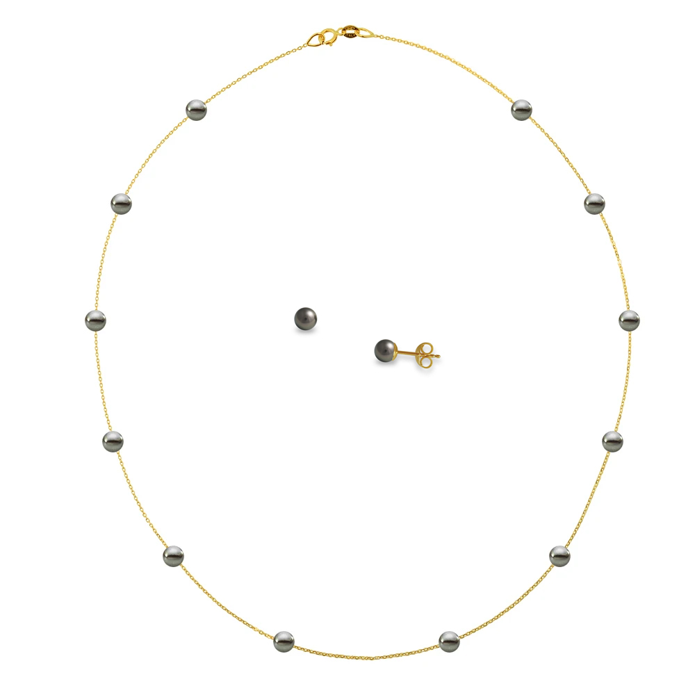 Σετ κολιέ και σκουλαρίκια με μαύρα μαργαριτάρια Κ14 - F124247BS