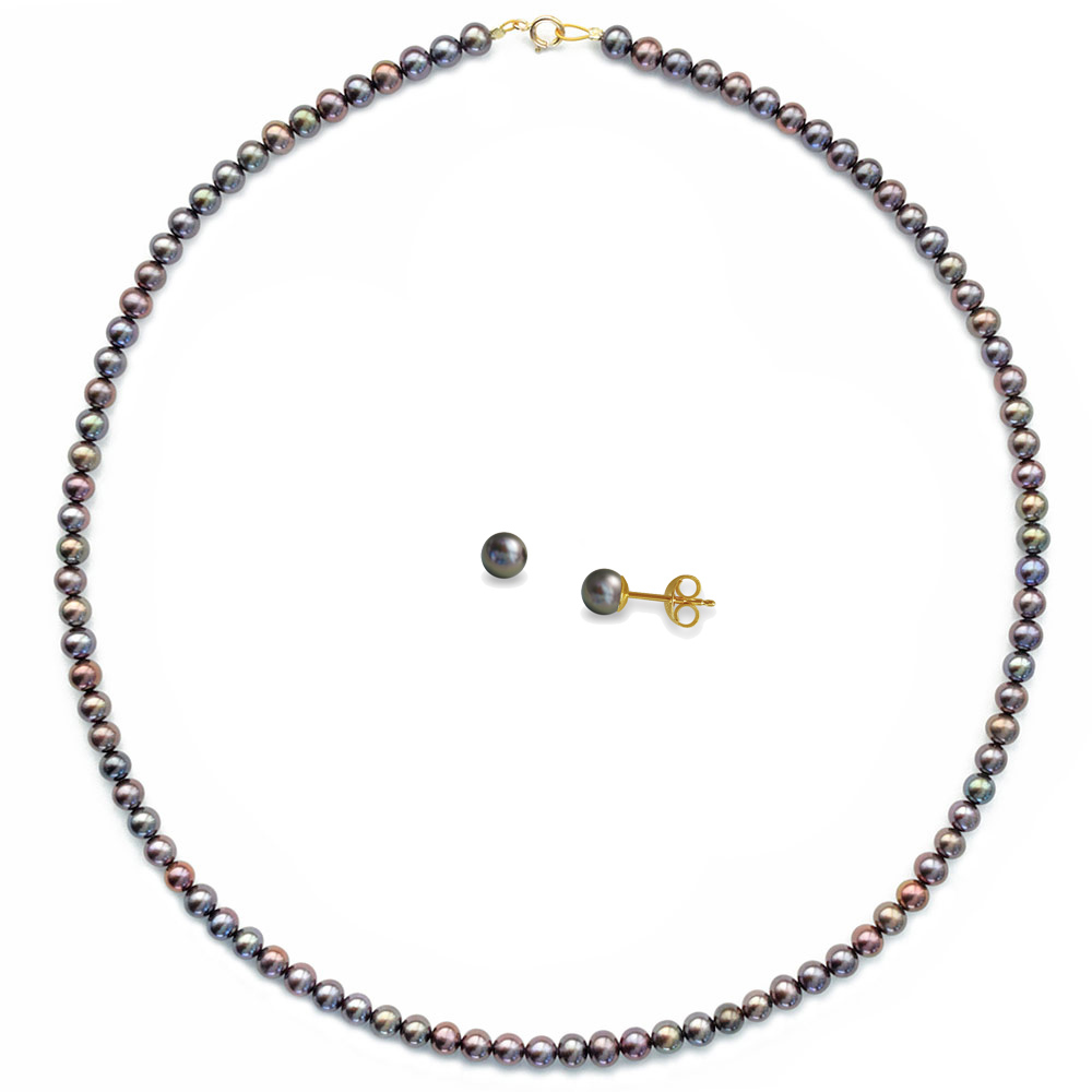 Σετ κολιέ και σκουλαρίκια με Κ14 χρυσά στοιχεία και μαύρα μαργαριτάρια - F307094