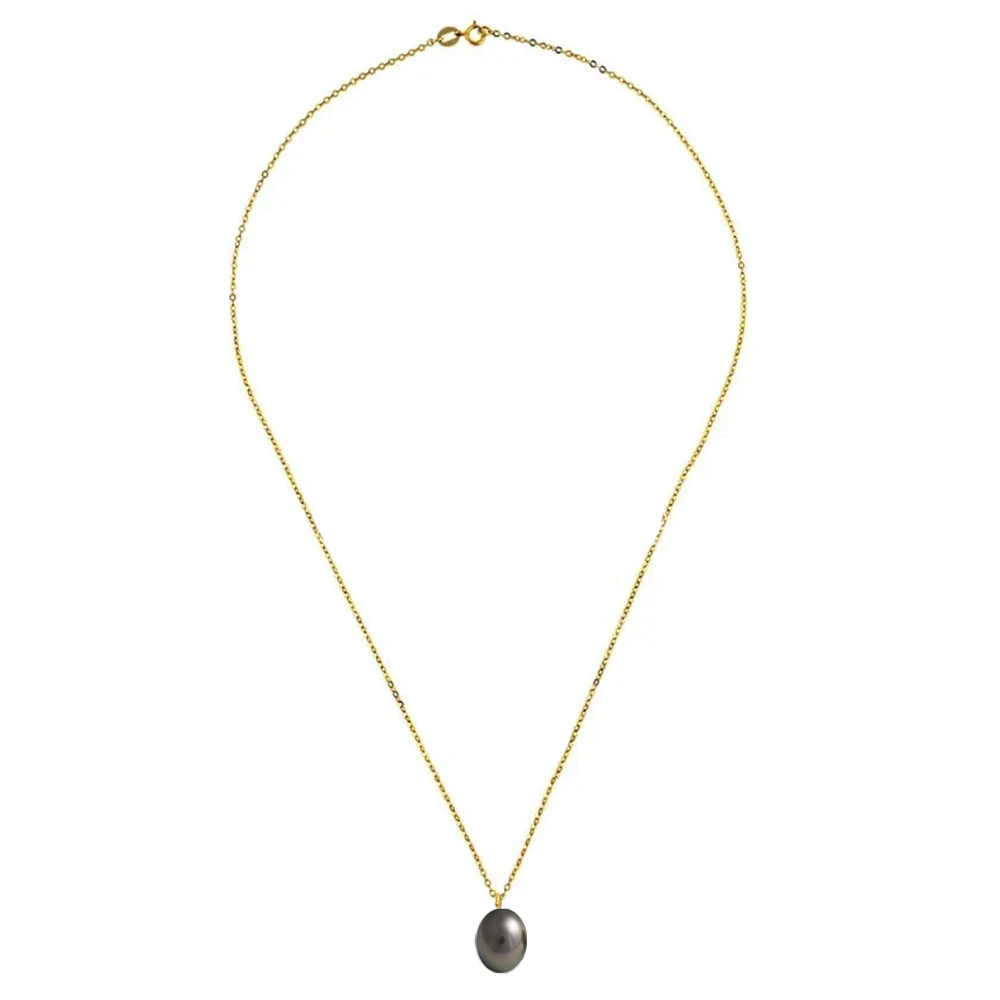 Στο κέντρο της αλυσίδα κρέμεται με χρυσό κρίκο ένα εντυπωσιακό μενταγιόν με μαύρο μαργαριτάρι Fresh Water Pearl διαστάσεων 9 x 11 χιλιοστών σε σχήμα Longάριστης ποιότητας.