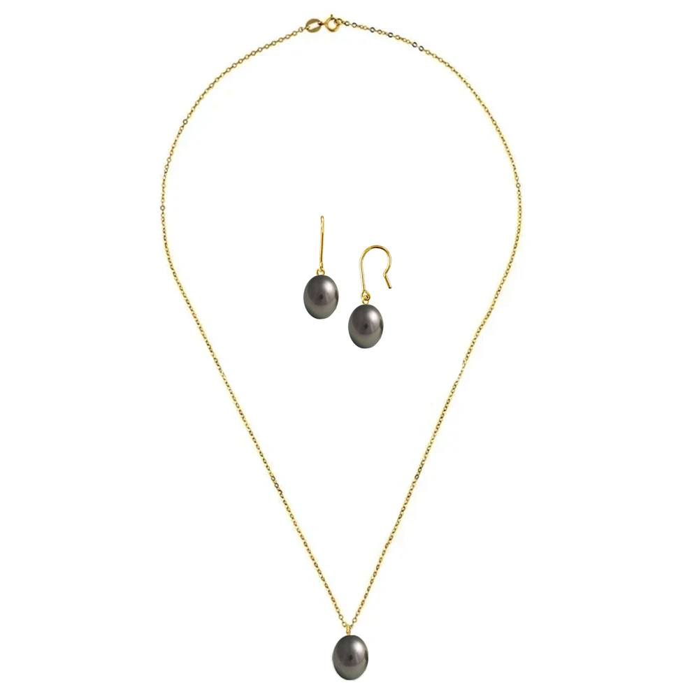 Σετ κολιέ και σκουλαρίκια με μαύρα μαργαριτάρια σε χρυσό Κ14 - S125349BL