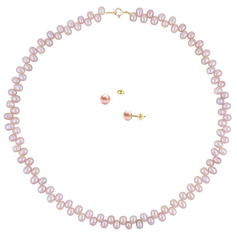 Σετ κολιέ και σκουλαρίκια με σομόν μαργαριτάρια K14 - M125432S