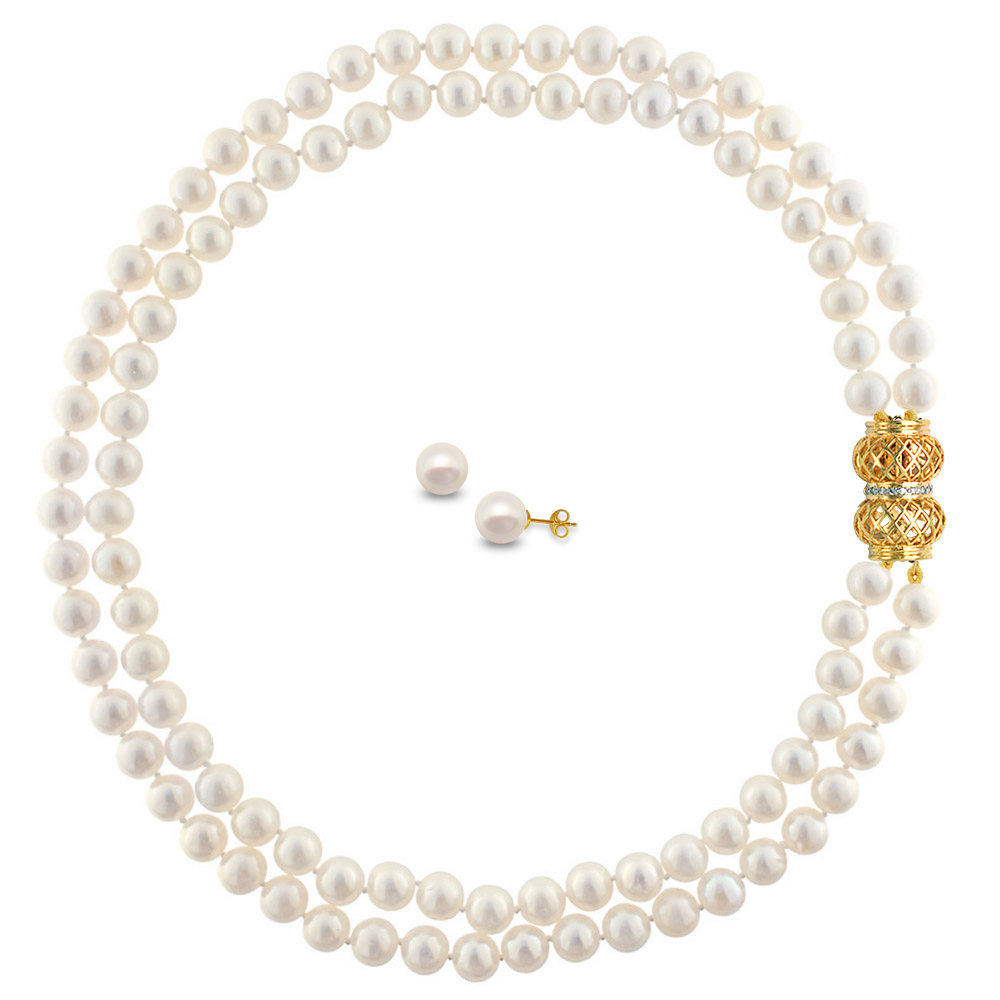 1. Ένα πανέμορφο κολιέ με 2 σειρές λευκά μαργαριτάρια Fresh Water Pearl, άριστης ποιότητας διαμέτρου 9 - 10 χιλιοστών σε σχήμα Round (στρόγγυλο).
