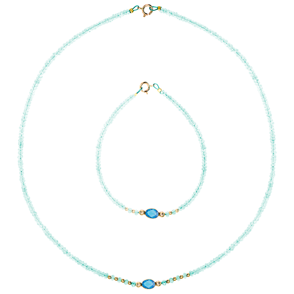 Σετ κολιέ και βραχιόλι με Κ14 χρυσά στοιχεία, aqua και blue topaz - F124144