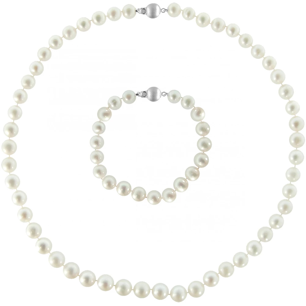 Σετ με Κ14 λευκόχρυσο κούμπωμα κολιέ και βραχιόλι με λευκά μαργαριτάρια - S126000