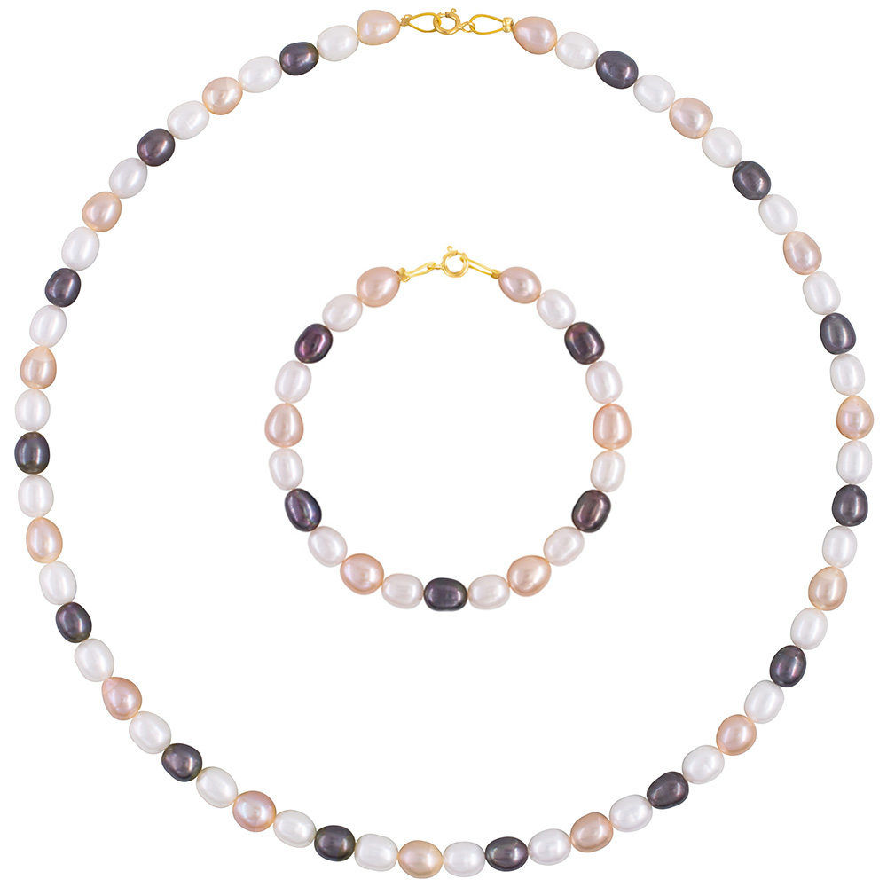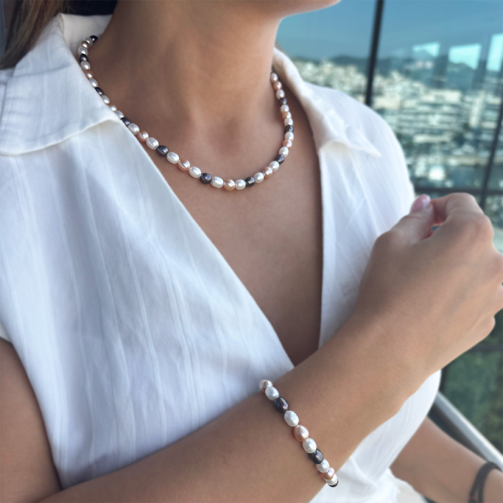 Σετ κολιέ & βραχιόλι με Κ14 χρυσό κούμπωμα και πολύχρωμα μαργαριτάρια - S126430S