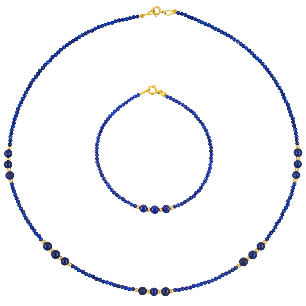 Σετ κολιέ και βραχιόλι με Κ14 χρυσά στοιχεία και λάπις λάζουλι - S126207L