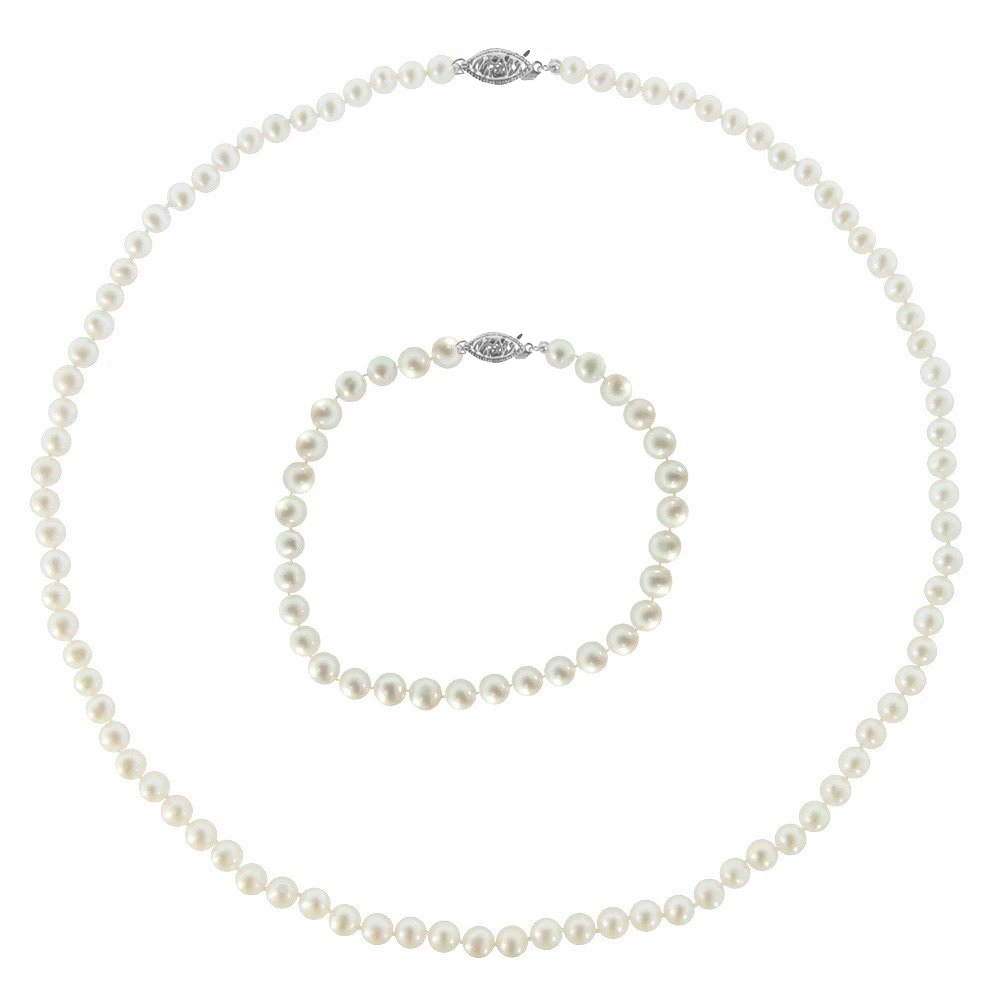Σετ κολιέ και βραχιόλι με λευκά μαργαριτάρια και 925 ασημένιο κούμπωμα - S124693