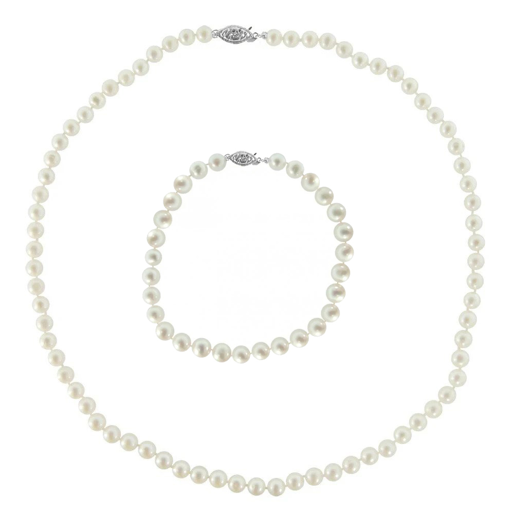 -8% Σετ κολιέ και βραχιόλι με λευκά μαργαριτάρια και 925 ασημένιο κούμπωμα - S124695