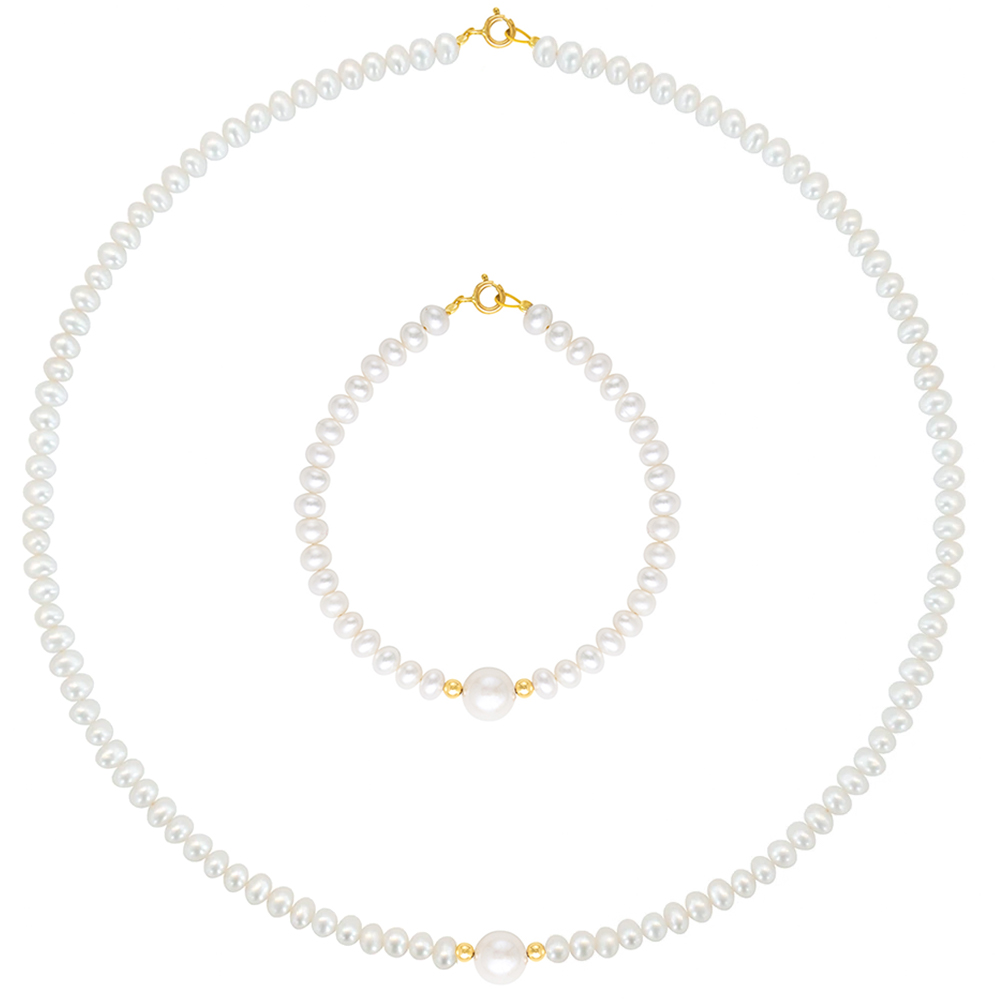 Σετ κολιέ και βραχιόλι με Κ14 χρυσά στοιχεία και λευκά μαργαριτάρια - S124828W
