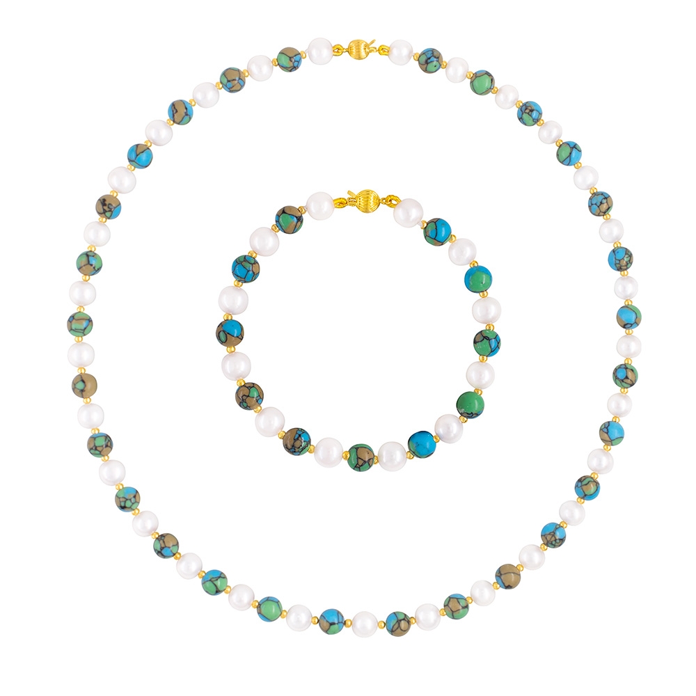 Σετ κολιέ & βραχιόλι με Κ14 χρυσά στοιχεία, μαργαριτάρια και Spiny Oyster - S126429S