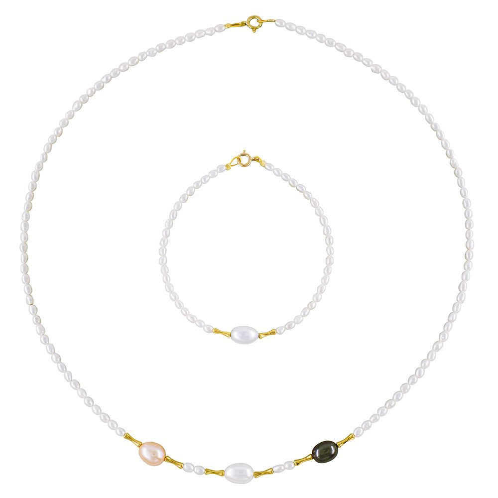 Νέο Σετ κολιέ & βραχιόλι με Κ18 χρυσά στοιχεία, λευκά & πολύχρωμα μαργαριτάρια - S1252333