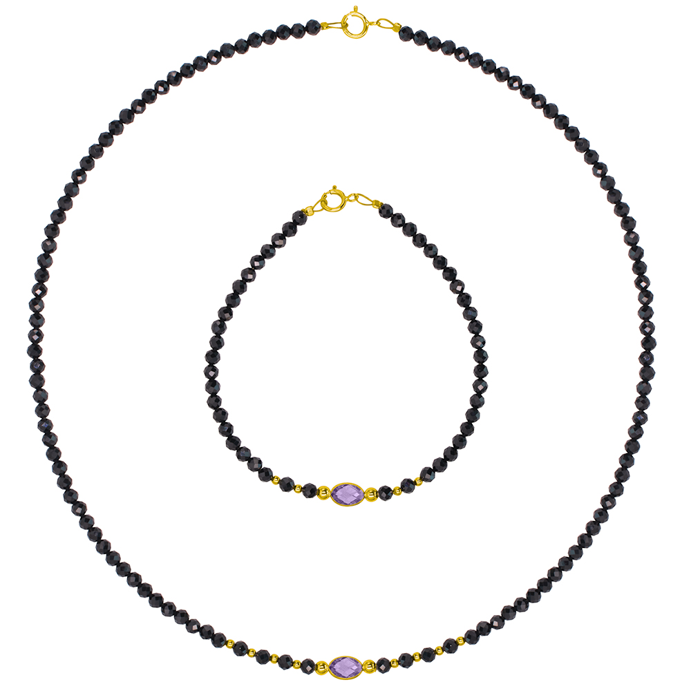Σετ κολιέ και βραχιόλι με Κ14 χρυσά στοιχεία, spinel και amethyst - F124245A
