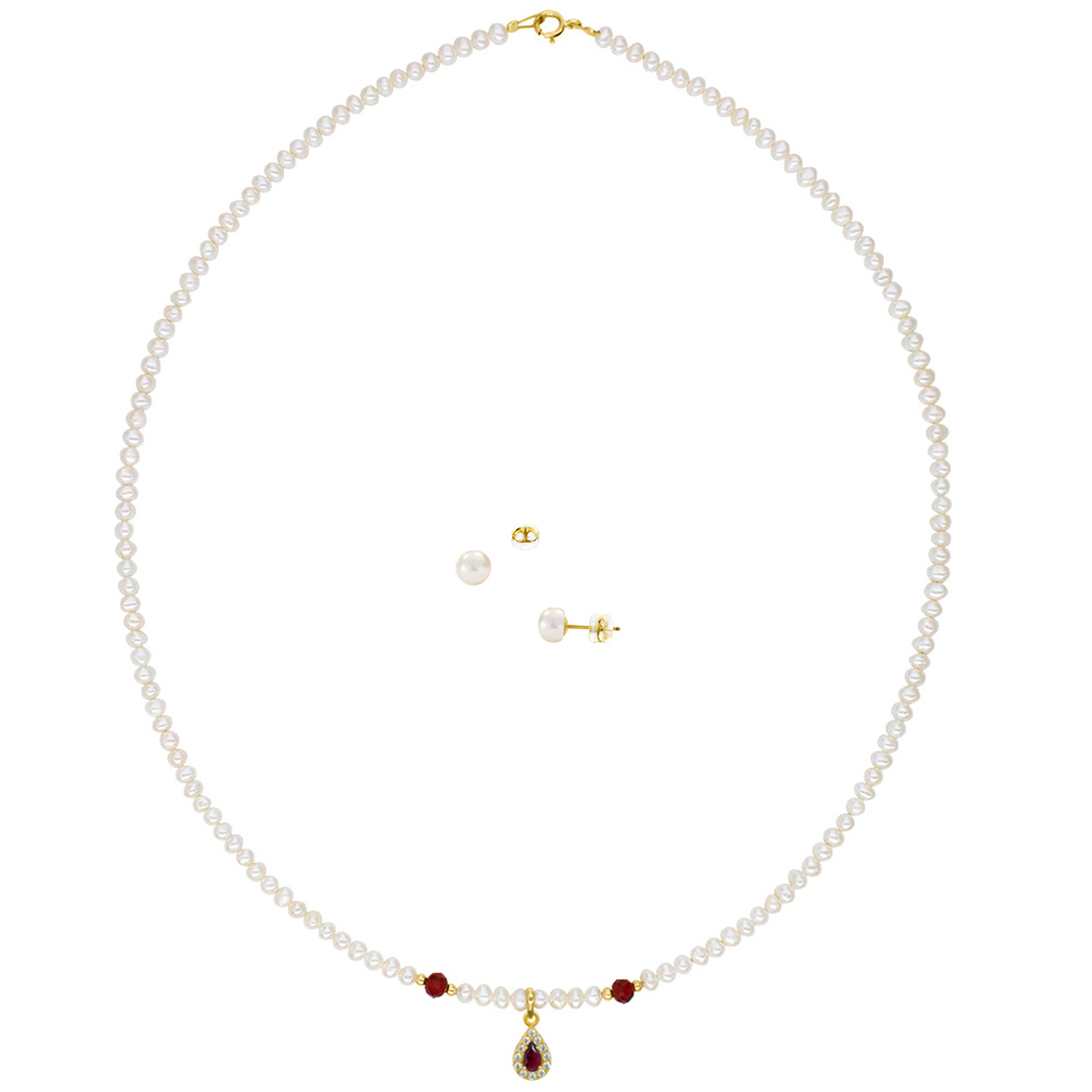 Σετ κολιέ και σκουλαρίκια με Κ14 χρυσά στοιχεία, λευκά μαργαριτάρια και ζιργκόν - S124493R