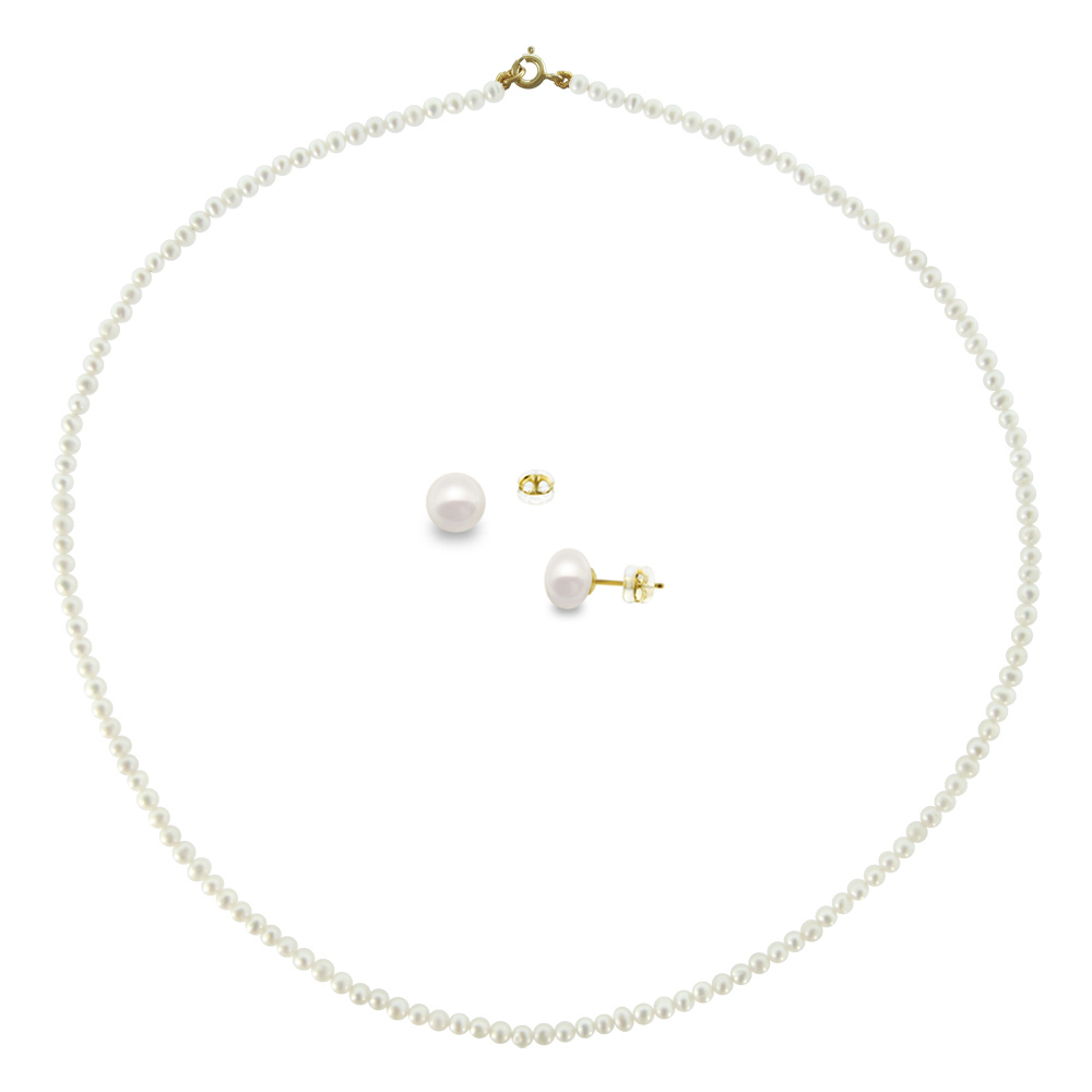 Σετ κολιέ και σκουλαρίκια σε Κ14 χρυσό με λευκά μαργαριτάρια - M990037