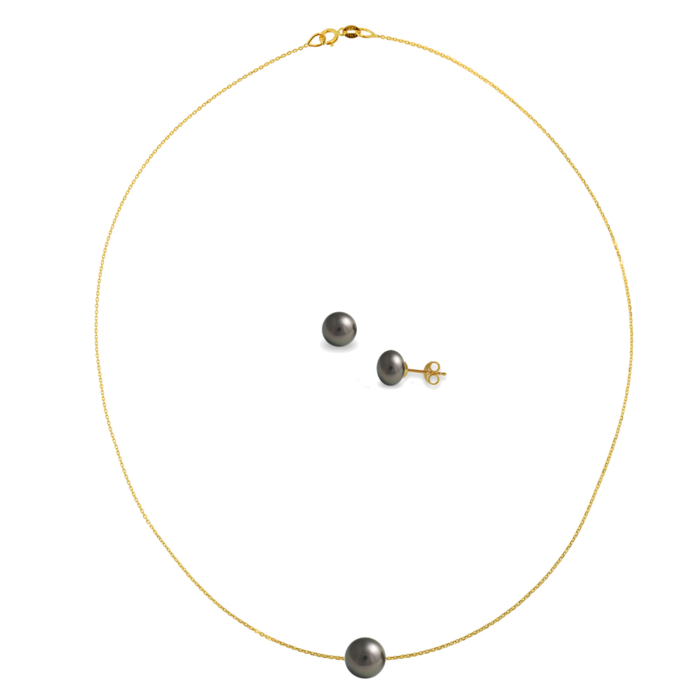 1. Ένα υπέροχο κολιέ με μαύρο μαργαριτάρι Fresh Water Pearl διαμέτρου 10 - 11 χιλιοστά σε σχήμα Round (στρογγυλό), άριστης ποιότητας. Διαθέτει χρυσή αλυσίδα 14 καρατίων καθώς και χρυσό κούμπωμα ασφαλείας 14 καρατίων. Το συνολικό μήκος της αλυσίδας είναι 40 εκατοστά.