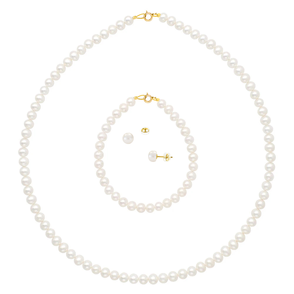 Σετ κολιέ, βραχιόλι και σκουλαρίκια με Κ14 χρυσά στοιχεία και με μαργαριτάρια - M990137S