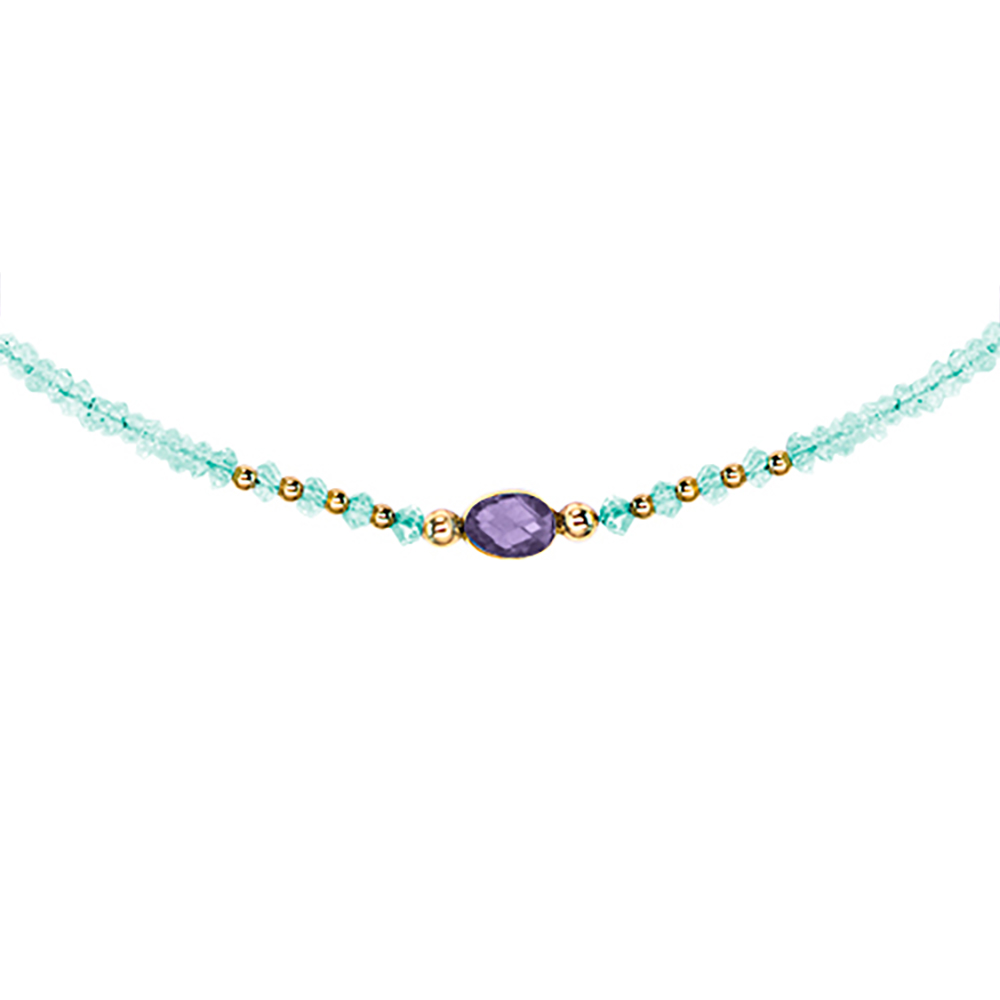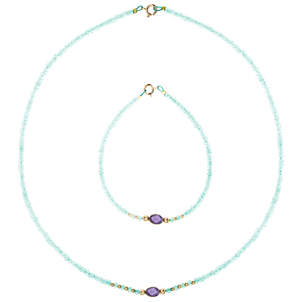 Σετ κολιέ και βραχιόλι με Κ14 χρυσά στοιχεία, aqua και amethyst - F124144A