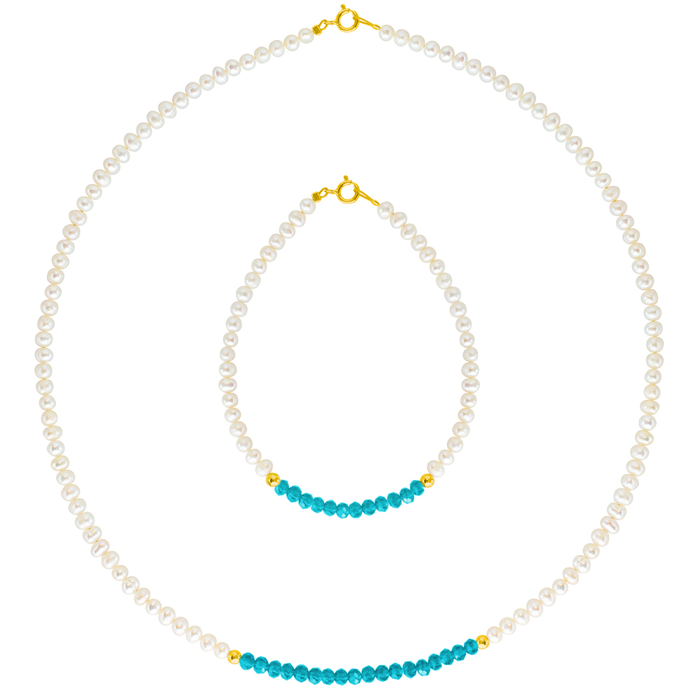 Σετ κολιέ και βραχιόλι με Κ14 χρυσά στοιχεία και μαργαριτάρια - F124339B