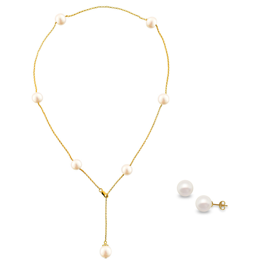 Σετ κολιέ και σκουλαρίκια σε Κ18 χρυσό με λευκά μαργαριτάρια - M990073
