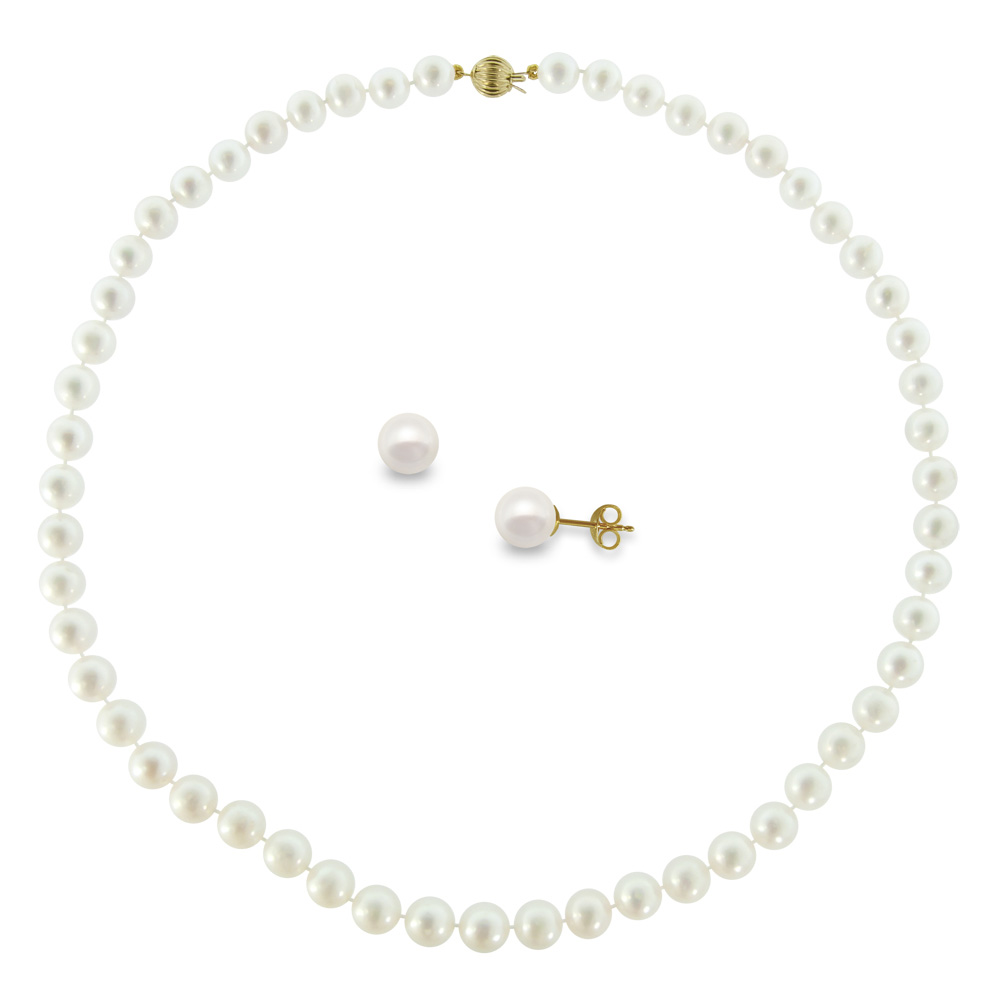 Σετ κολιέ και σκουλαρίκια σε Κ14 χρυσό με λευκά μαργαριτάρια - M990074