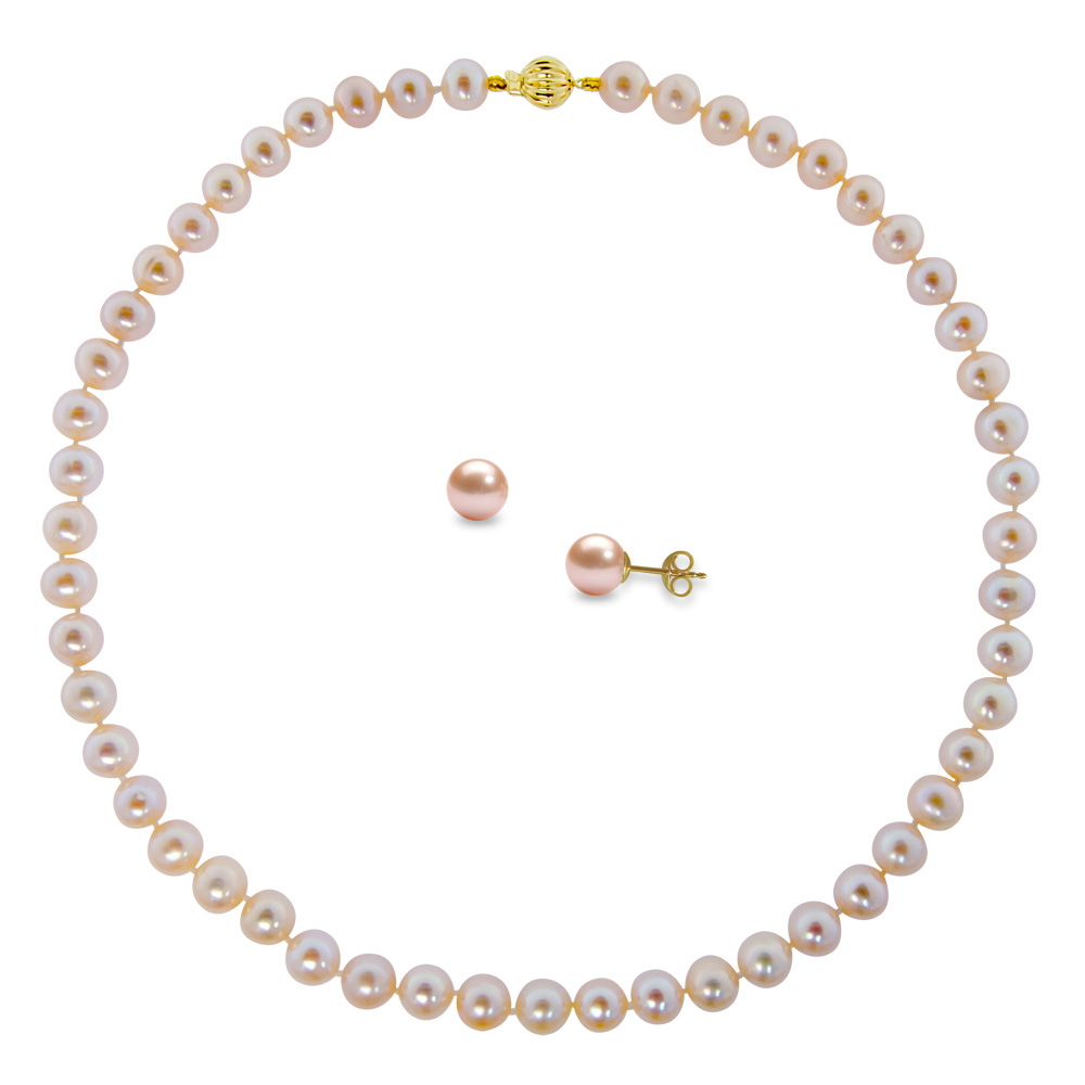 Σετ κολιέ και σκουλαρίκια σε Κ14 χρυσό με σομόν μαργαριτάρια - M990074S