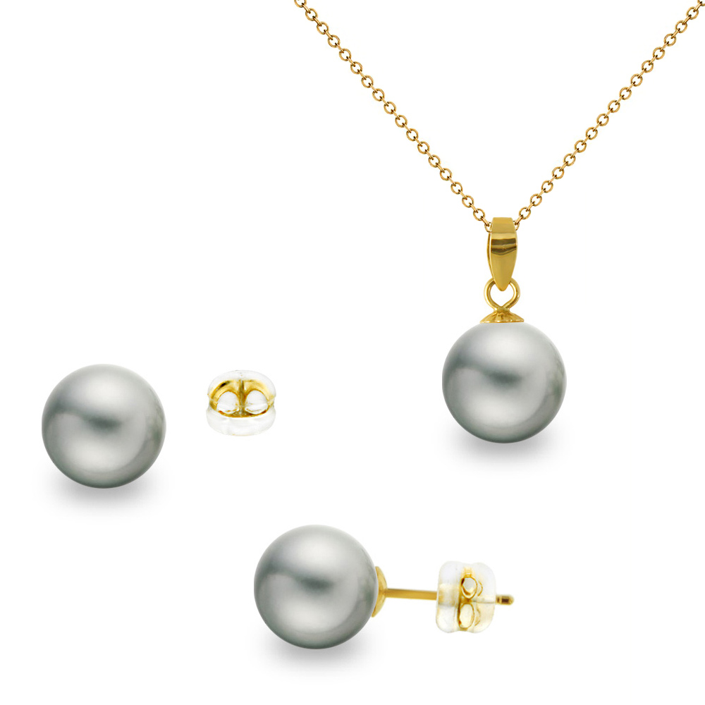 Σετ σκουλαρίκια και μενταγιόν σε Κ14 χρυσό με γκρί μαργαριτάρια - M990084G