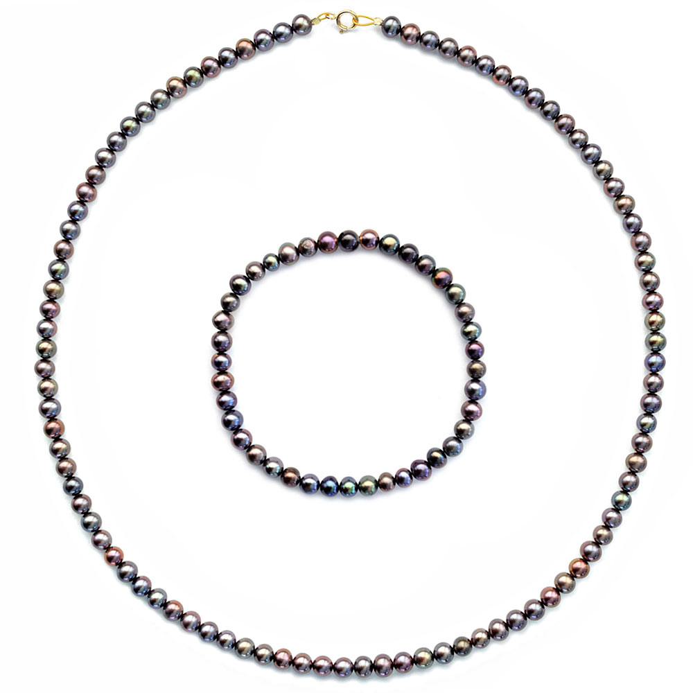 Σετ κολιέ και βραχιόλι με Κ14 χρυσό κούμπωμα και μαύρα μαργαριτάρια - M990094