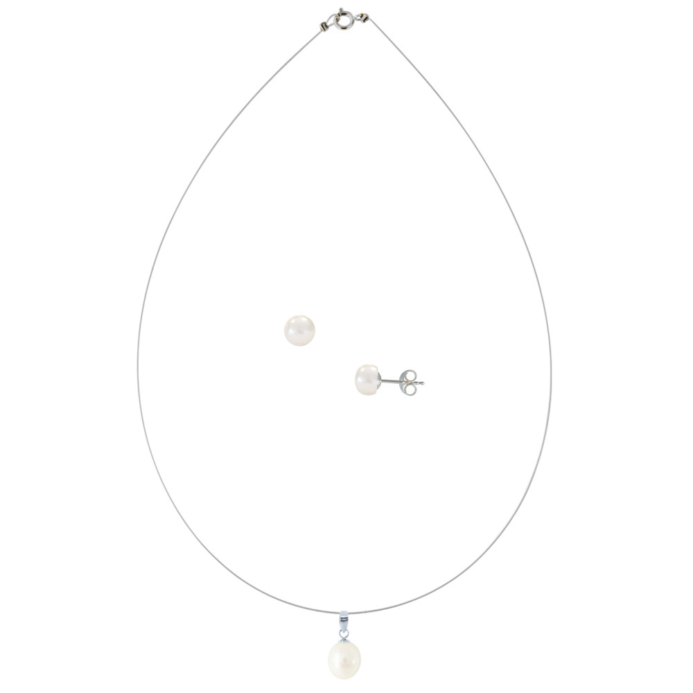 Σετ ασημένιο 925 κολιέ και σκουλαρίκια με μαργαριτάρια - M990103