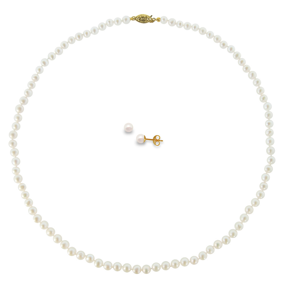 Σετ κολιέ, σκουλαρίκια σε Κ14 χρυσό με λευκά μαργαριτάρια - M990130