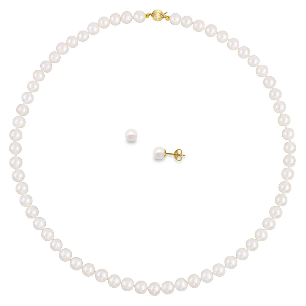 Σετ κολιέ, σκουλαρίκια σε Κ14 χρυσό με λευκά μαργαριτάρια - M990132