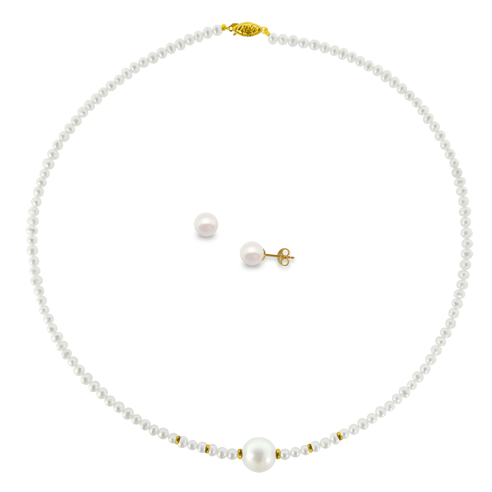 Σετ κολιέ, σκουλαρίκια σε Κ14 χρυσό με λευκά μαργαριτάρια - M990135