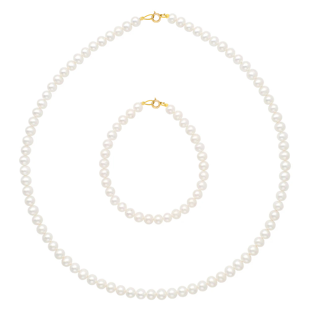-8% Σετ κολιέ και βραχιόλι σε Κ14 χρυσό με μαργαριτάρια - M990137