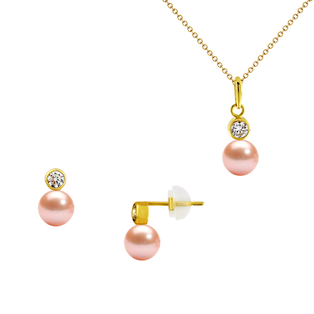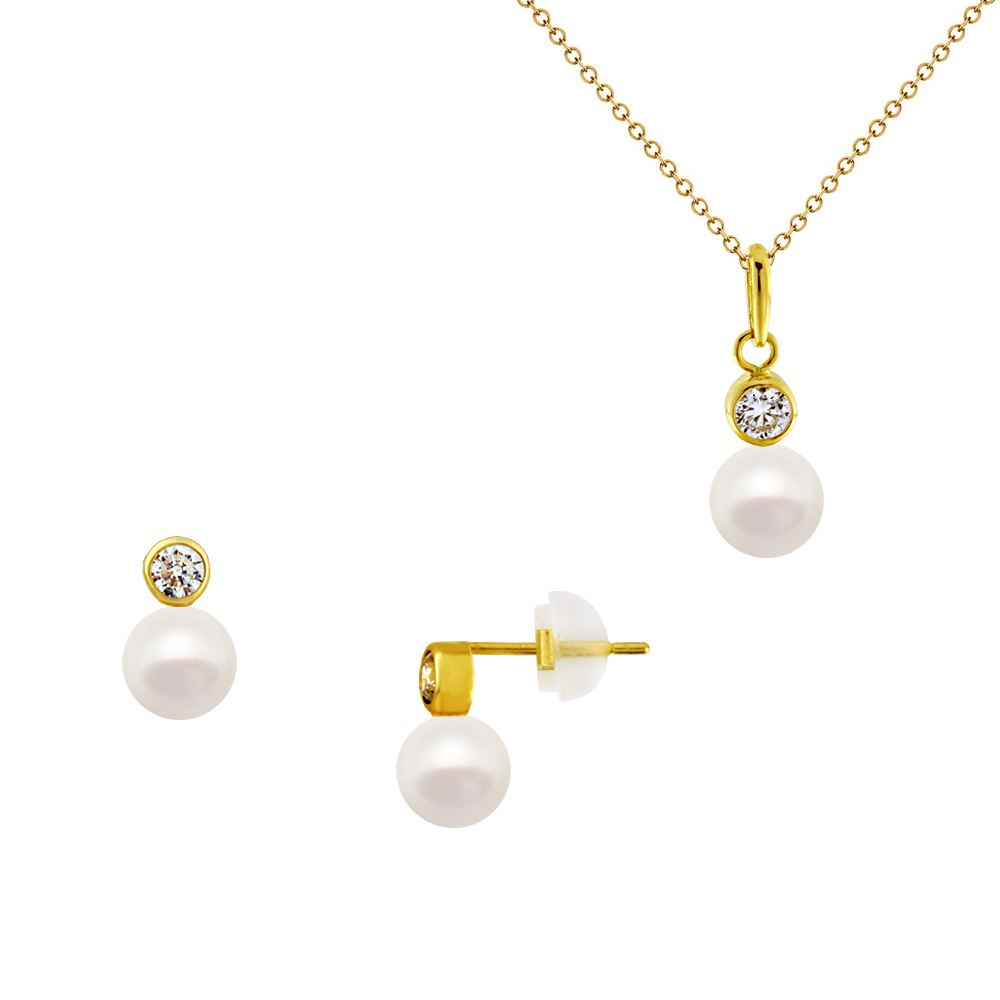 Σετ σκουλαρίκια και μενταγιόν με μαργαριτάρια σε χρυσό Κ14 - C990142