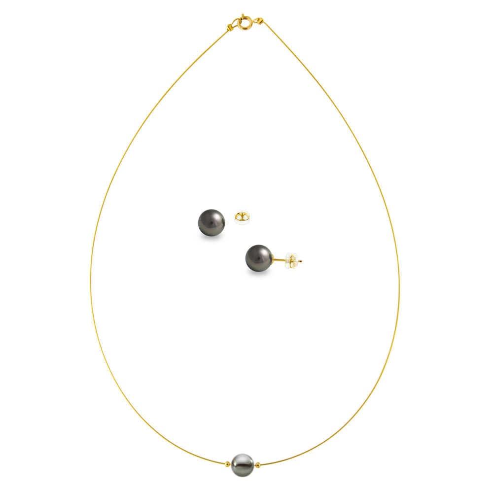 Σετ κολιέ και σκουλαρίκια με μαύρα μαργαριτάρια σε χρυσό Κ14 - M990081B