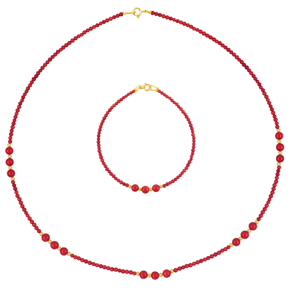 Σετ κολιέ και βραχιόλι με Κ14 χρυσά στοιχεία και κοράλλια - S126162