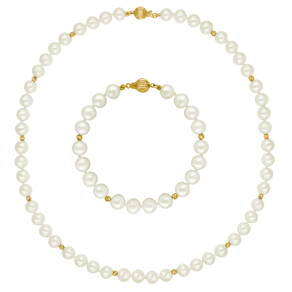 -12% Σετ κολιέ και βραχιόλι με Κ14 χρυσά στοιχεία με λευκά μαργαριτάρια - L124102