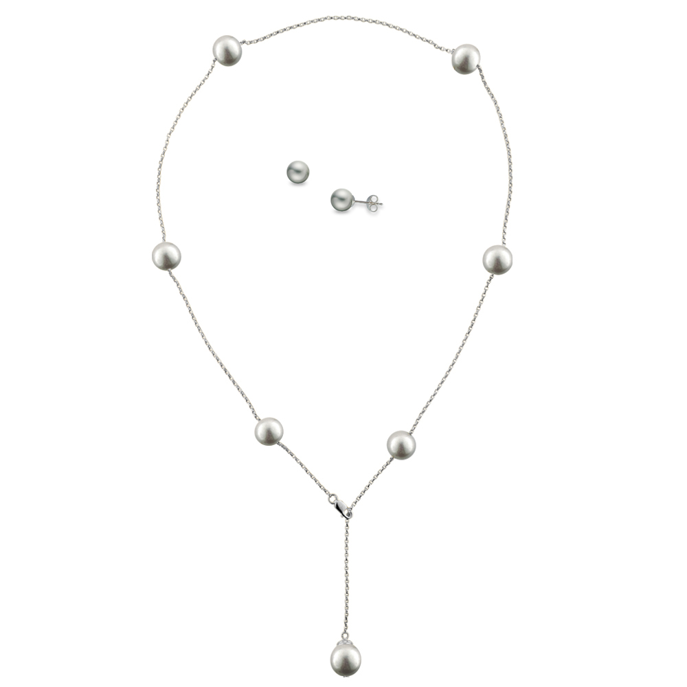 Σετ κολιέ και σκουλαρίκια σε Κ18 λευκόχρυσο με γκρι μαργαριτάρια - M990140