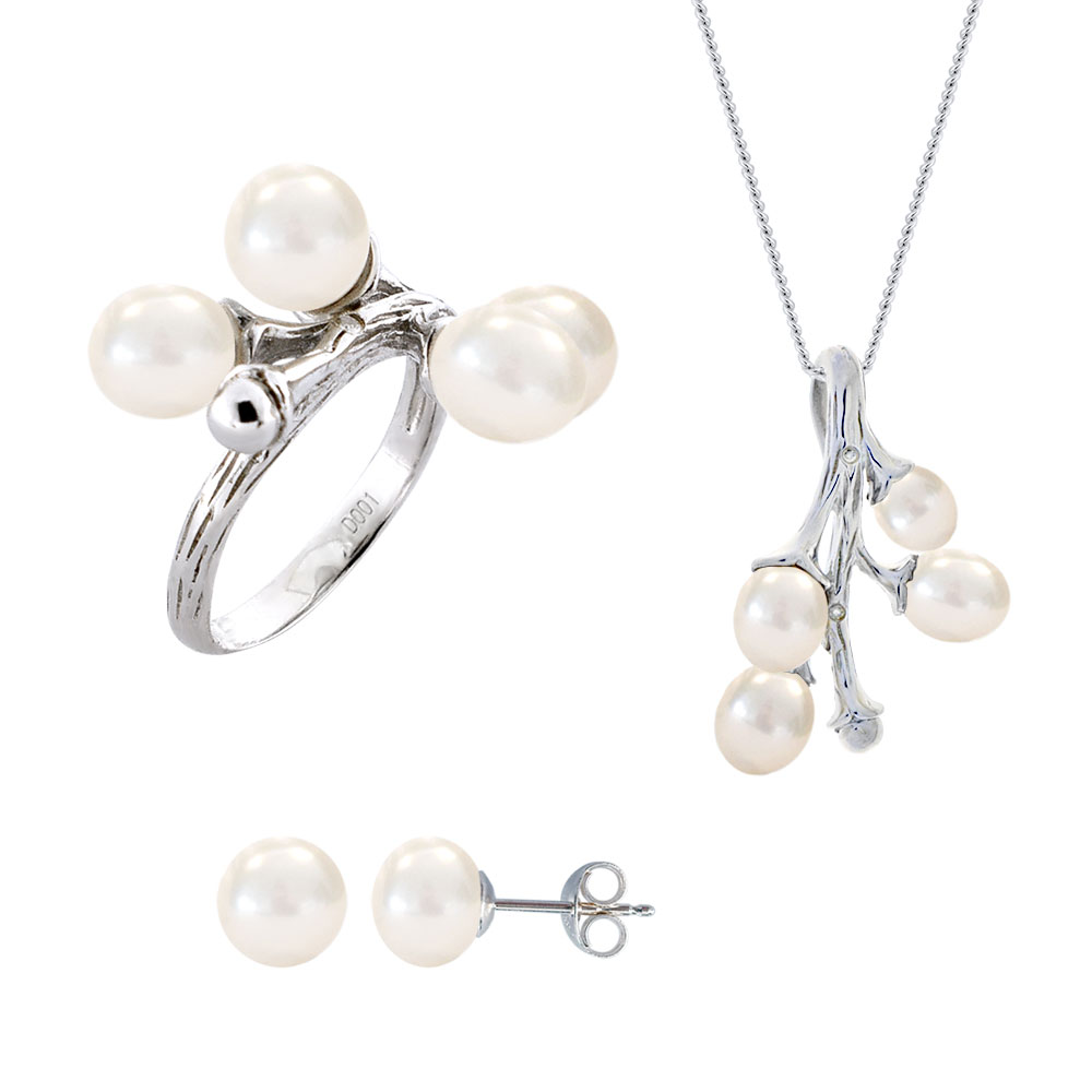 -7% Σετ δαχτυλίδι, μενταγιόν και δώρο σκουλαρίκια με λευκά μαργαριτάρια σε ασήμι 925 - M990064