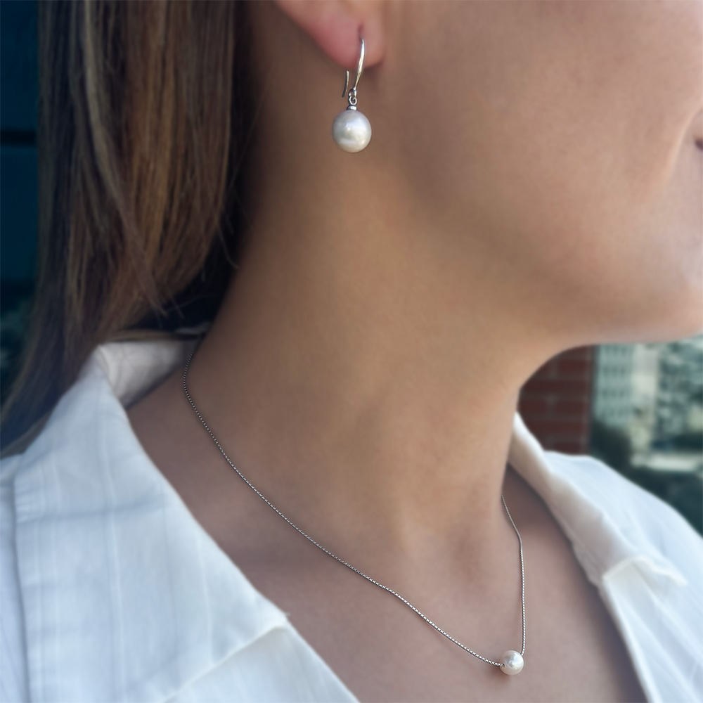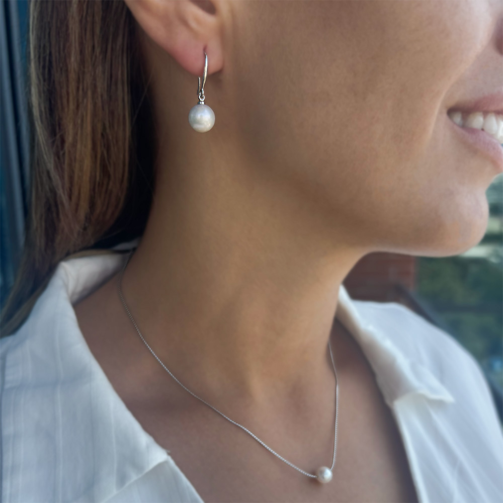 2. Ένα υπέροχο ζευγάρι σκουλαρίκια με λευκά μαργαριτάρια γλυκού νερού Fresh Water Pearl, σε σχήμα στρογγυλό, διαμέτρου 9,5 - 10 χιλιοστών και βάση από ασήμι 925.
