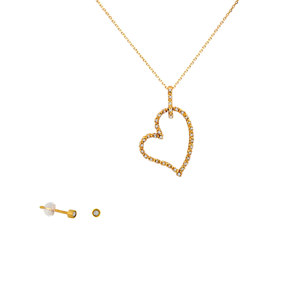 -16% Σετ σκουλαρίκια Κ18 χρυσά με διαμάντια & μενταγιόν καρδιά Κ18 με διαμάντια - S315720
