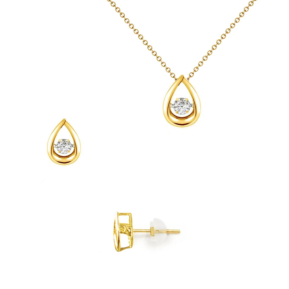 • Ένα ζευγάρι καρφωτά σκουλαρίκια χρυσά 18 καρατίων σε σχήμα σταγόνας. Στο εσωτερικό υπάρχουν 2 διαμάντια συνολικού βάρους 0,10 καρατίων, το οποίο είναι moving και κινείται σε κάθε κίνηση. Τα διαμάντια καθαρότητας VS1 και κοπής Brilliant είναι τοποθετημένα σε μία χρυσή βάση Κ18, η οποία δίνει κίνηση στα BrilliantΤα κουμπώματα είναι με σιλικόνη που στο εσωτερικό τους έχουν χρυσό Κ18 μέταλλο και είναι ιδανικό για γυναίκες που έχουν αλεργία σε μέταλλο όπως ο χρυσός.