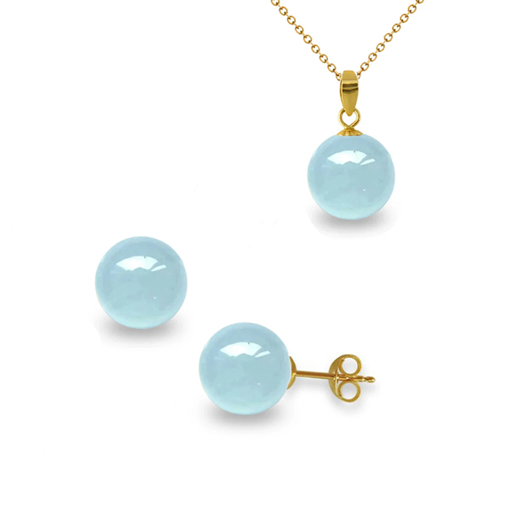 -23% Σετ σκουλαρίκια και μενταγιόν Κ14 χρυσά με aqua - M318722AQ