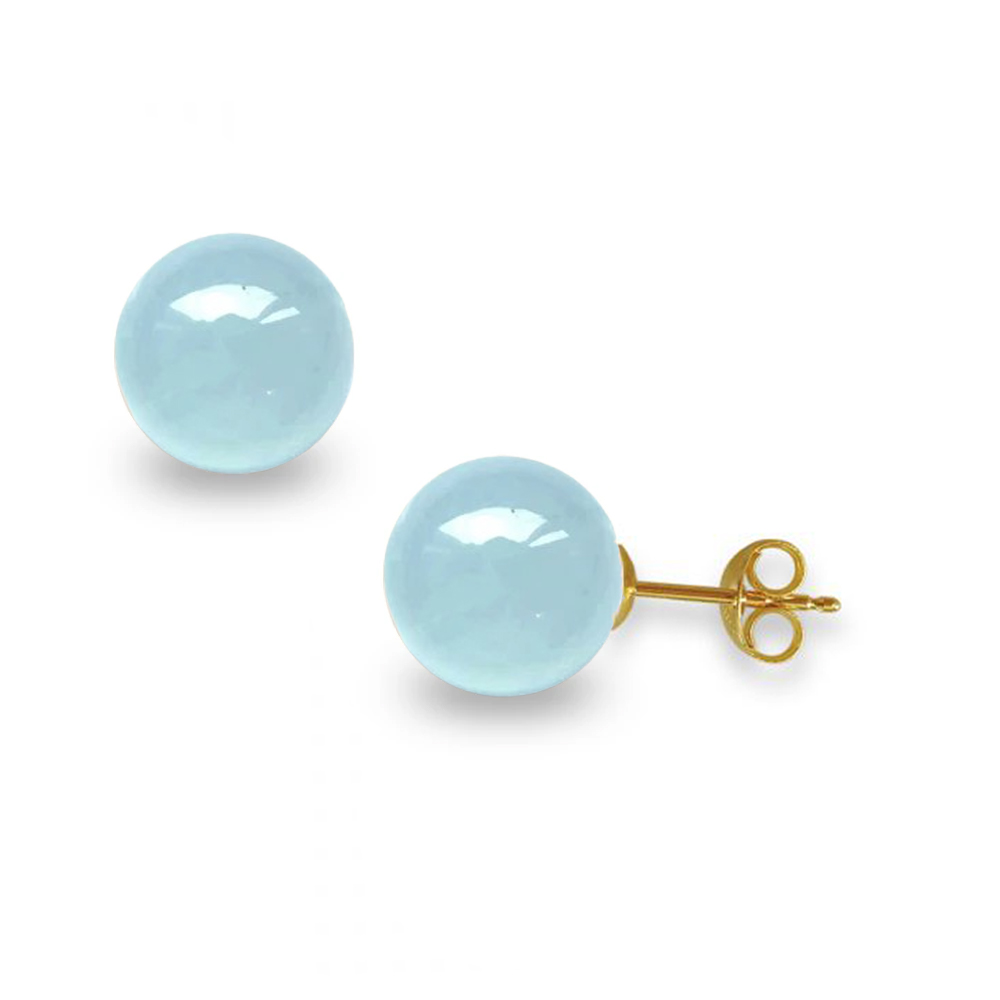 1. Ένα υπέροχο ζευγάρι σκουλαρίκια με εντυπωσιακή στρογγυλή ημιπολύτιμη πέτρα Aqua CZ διαμέτρου 12 χιλιοστών.