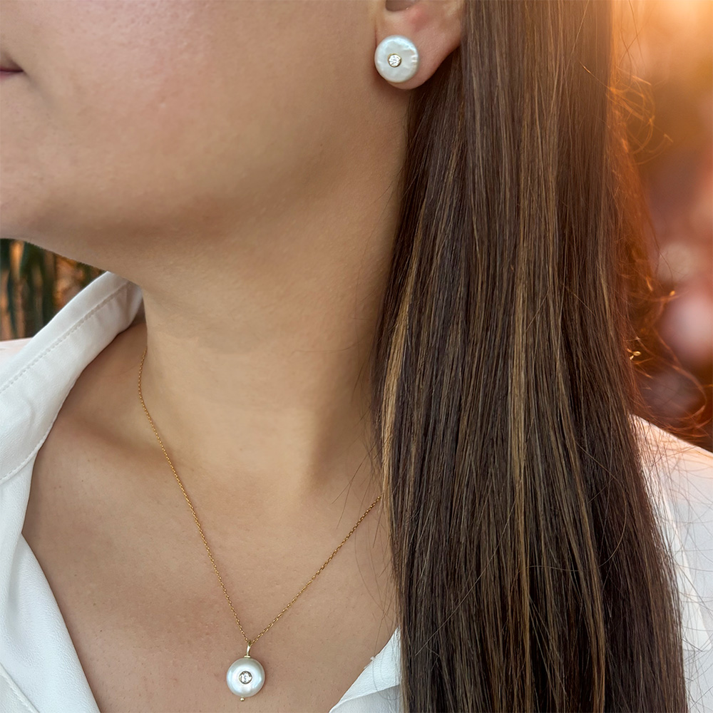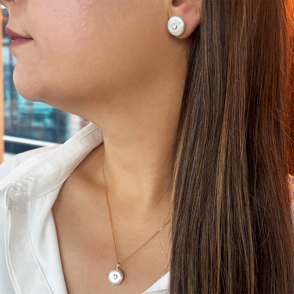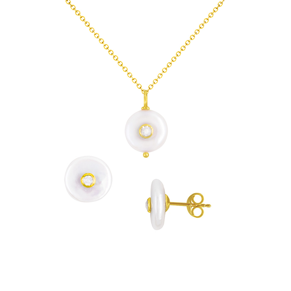 Σετ σκουλαρίκια και μενταγιόν 925 ασημένια επιχρυσωμένα με λευκά μαργαριτάρια και ζιργκόν - S126577
