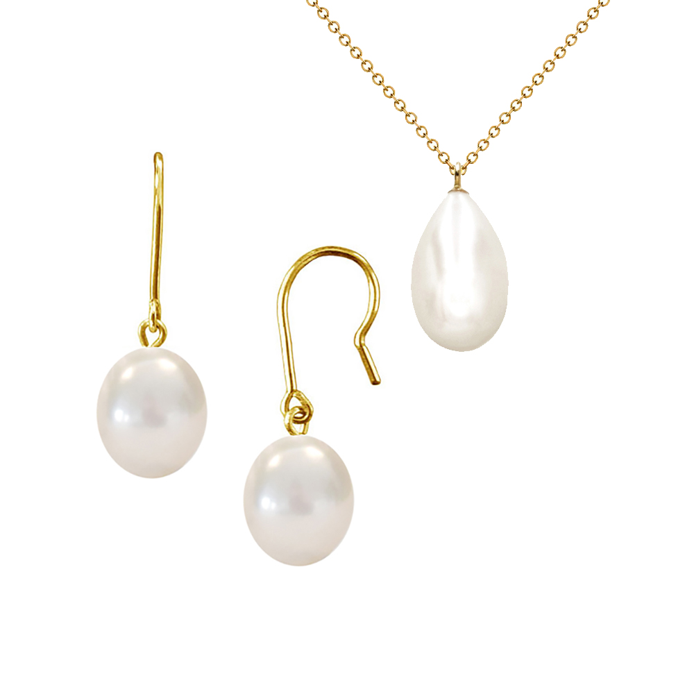 -10% Σετ σκουλαρίκια και μενταγιόν σε Κ14 χρυσό με μαργαριτάρια - M124083