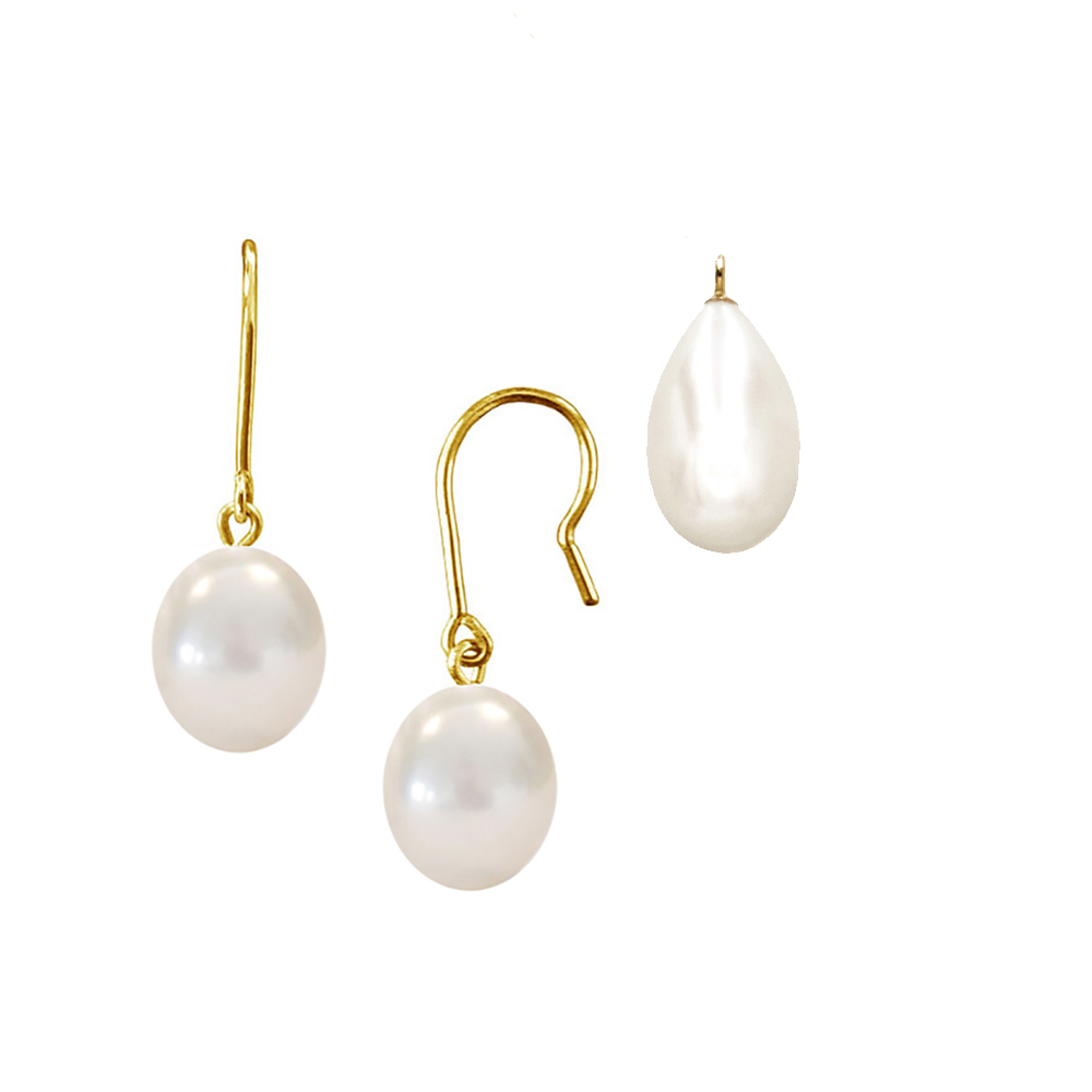 • Ένα υπέροχο ζευγάρι κρεμαστά σκουλαρίκια με λευκά μαργαριτάρια Fresh Water Pearl, άριστης ποιότητας σε σχήμα Drop (σταγόνα), διαμέτρου 8,5 - 11  χιλιοστών.