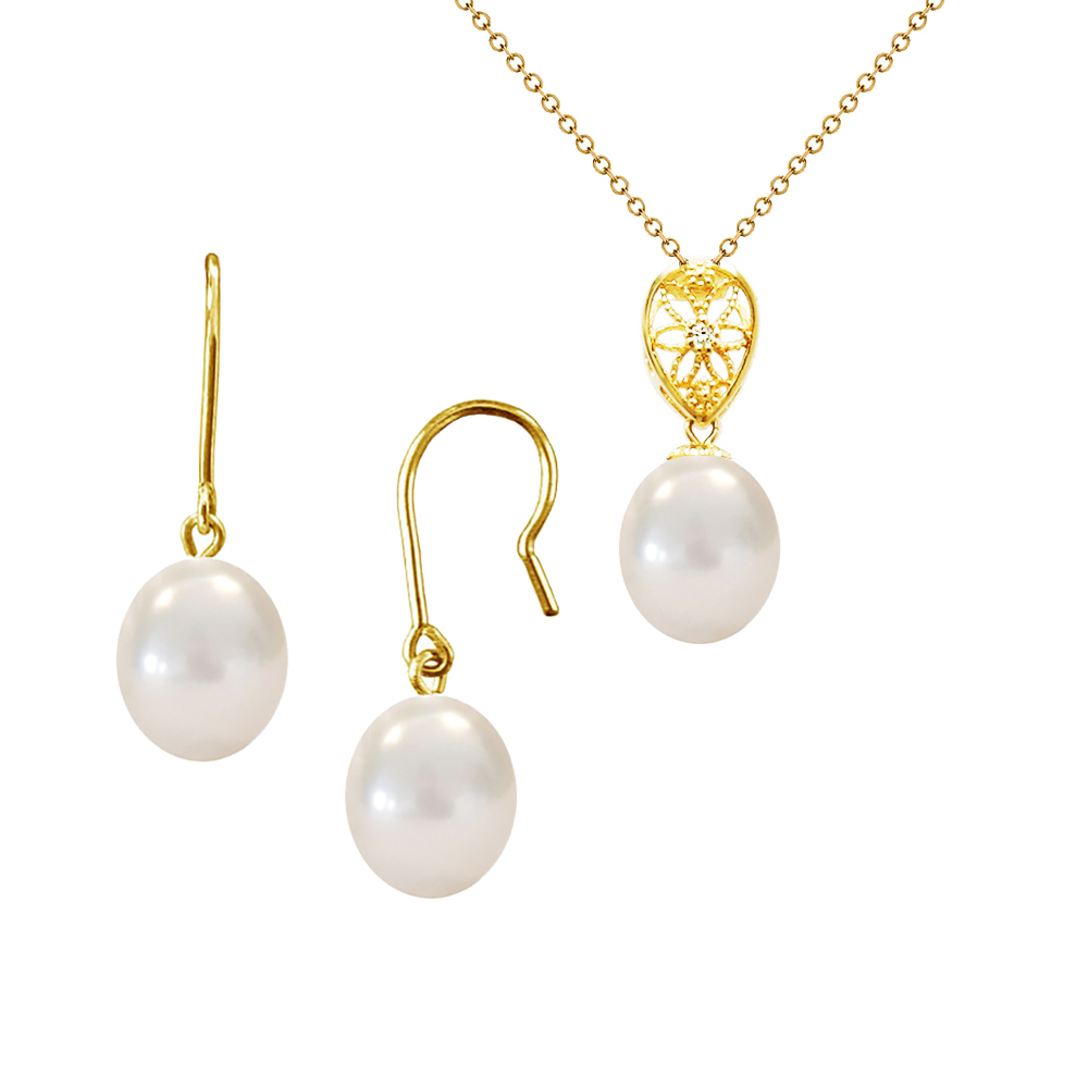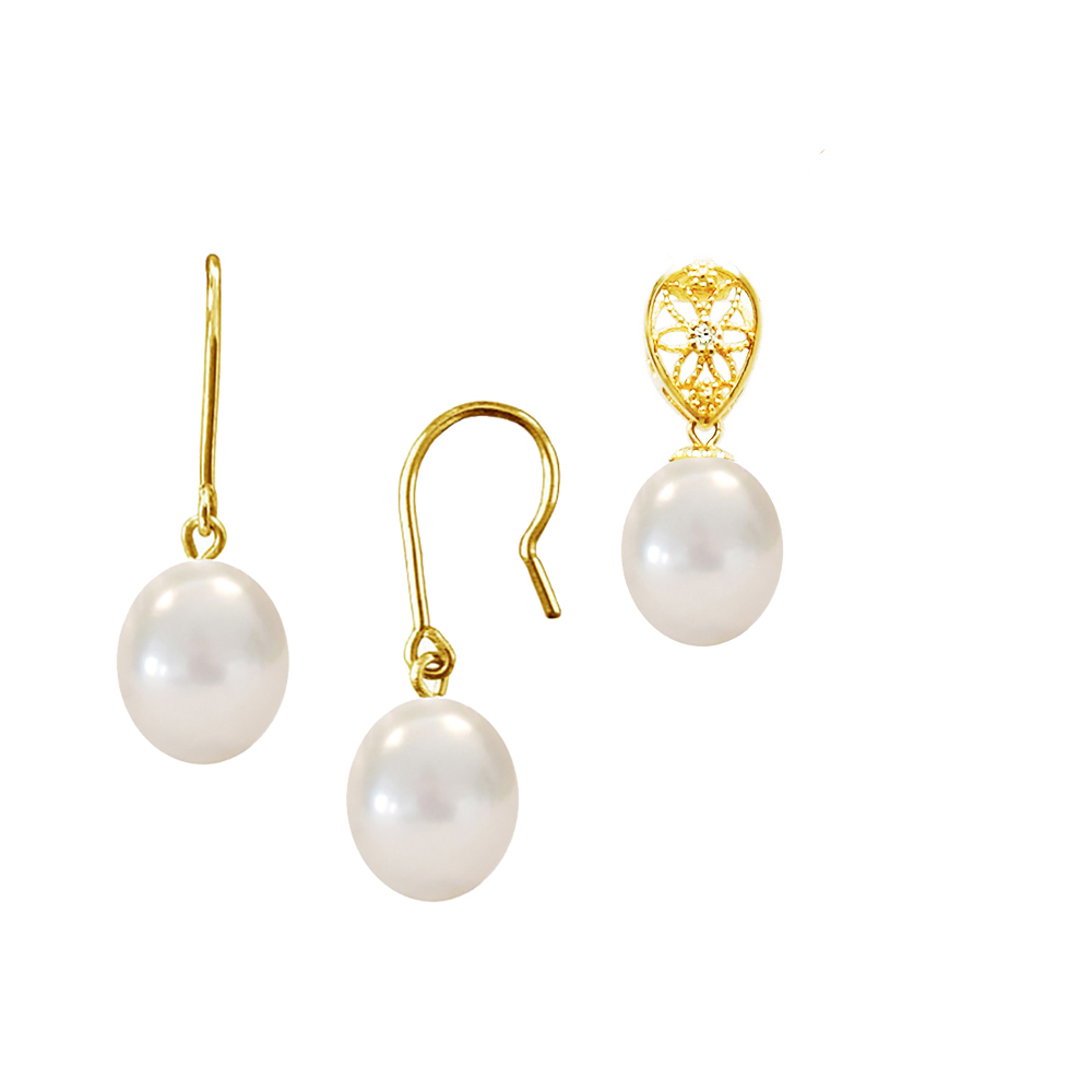Σετ σκουλαρίκια και μενταγιόν σε Κ14 χρυσό με μαργαριτάρια - M124084