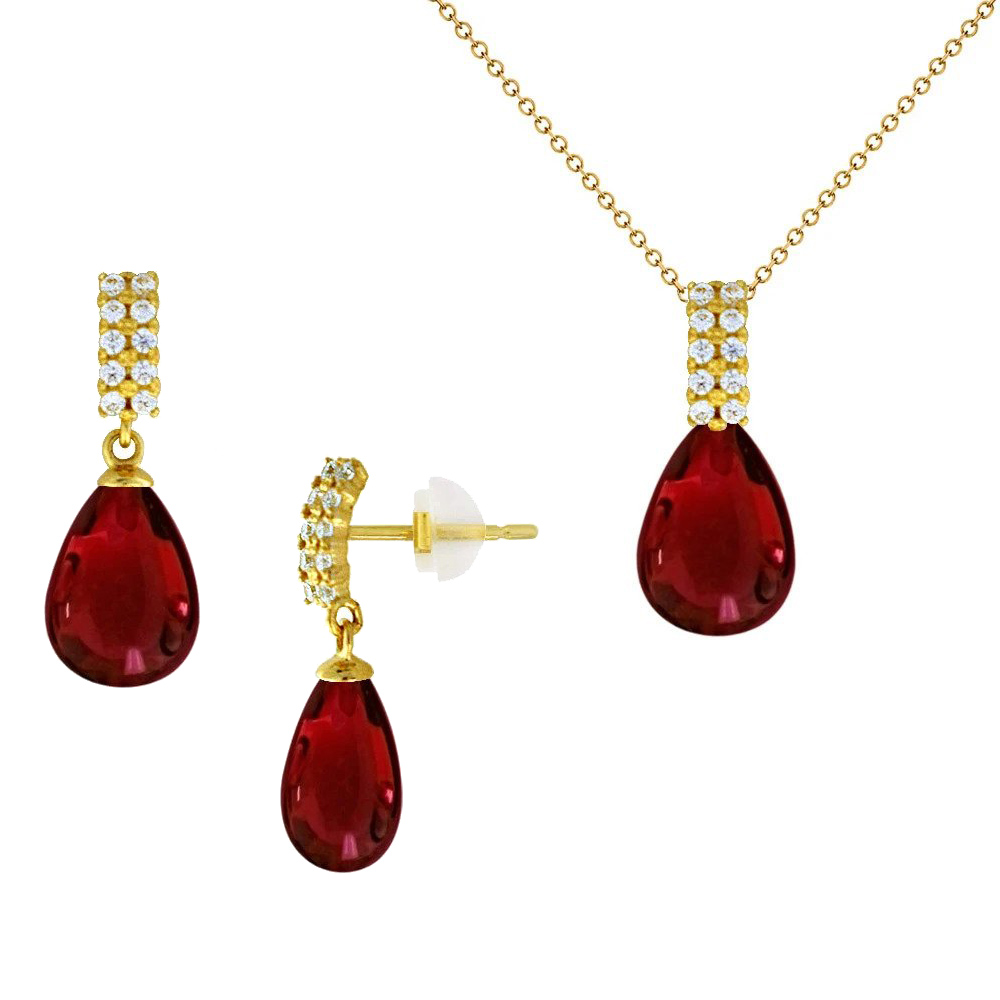 Σετ σκουλαρίκια και μενταγιόν σε Κ14 χρυσό με Garnet - M990096