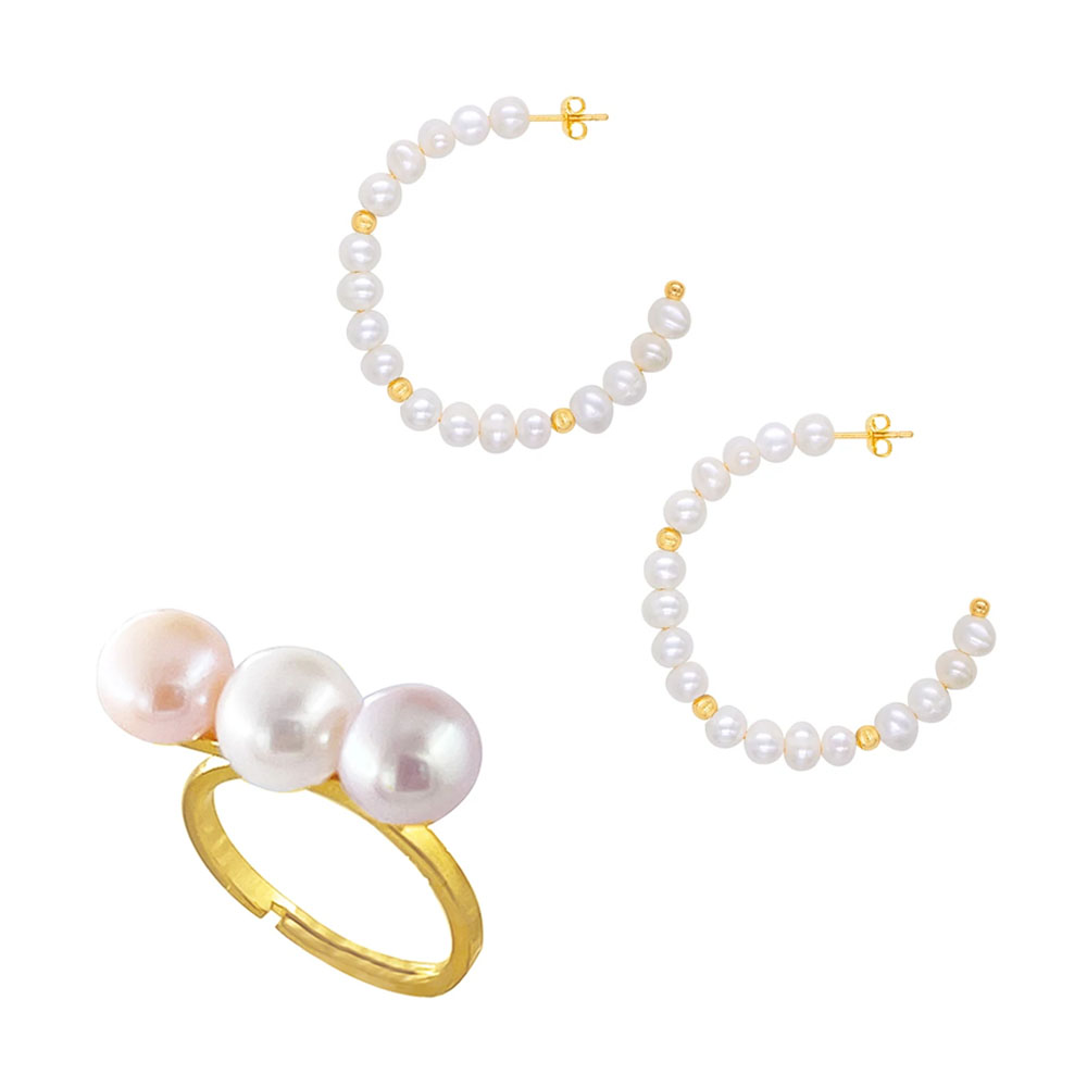 -40% Σετ σκουλαρίκια και δαχτυλίδι με λευκά μαργαριτάρια - S125137