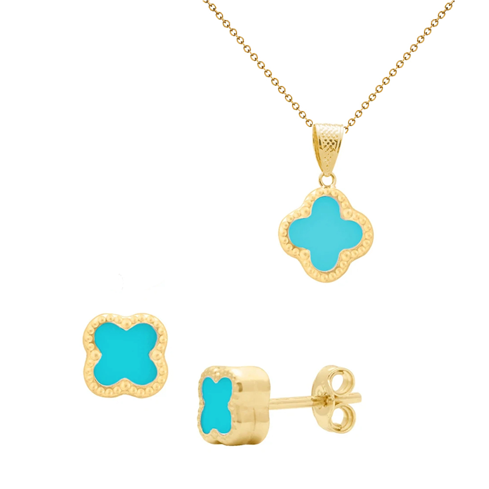 Σετ σκουλαρίκια και μενταγιόν Κ14 με τιρκουάζ- G125458ST